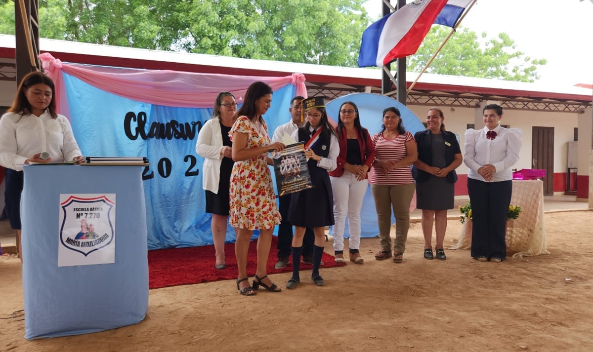 María Auxiliadora – 02/12/24: durante la mañana se desarrolló el acto de clausura del año escolar en la Escuela Básica Nro° 7.270 Maria Auxiliadora. En representación del gobernador Arturo Méndez participó del acto la secretaria departamental de educación Lic.Edita Jara.