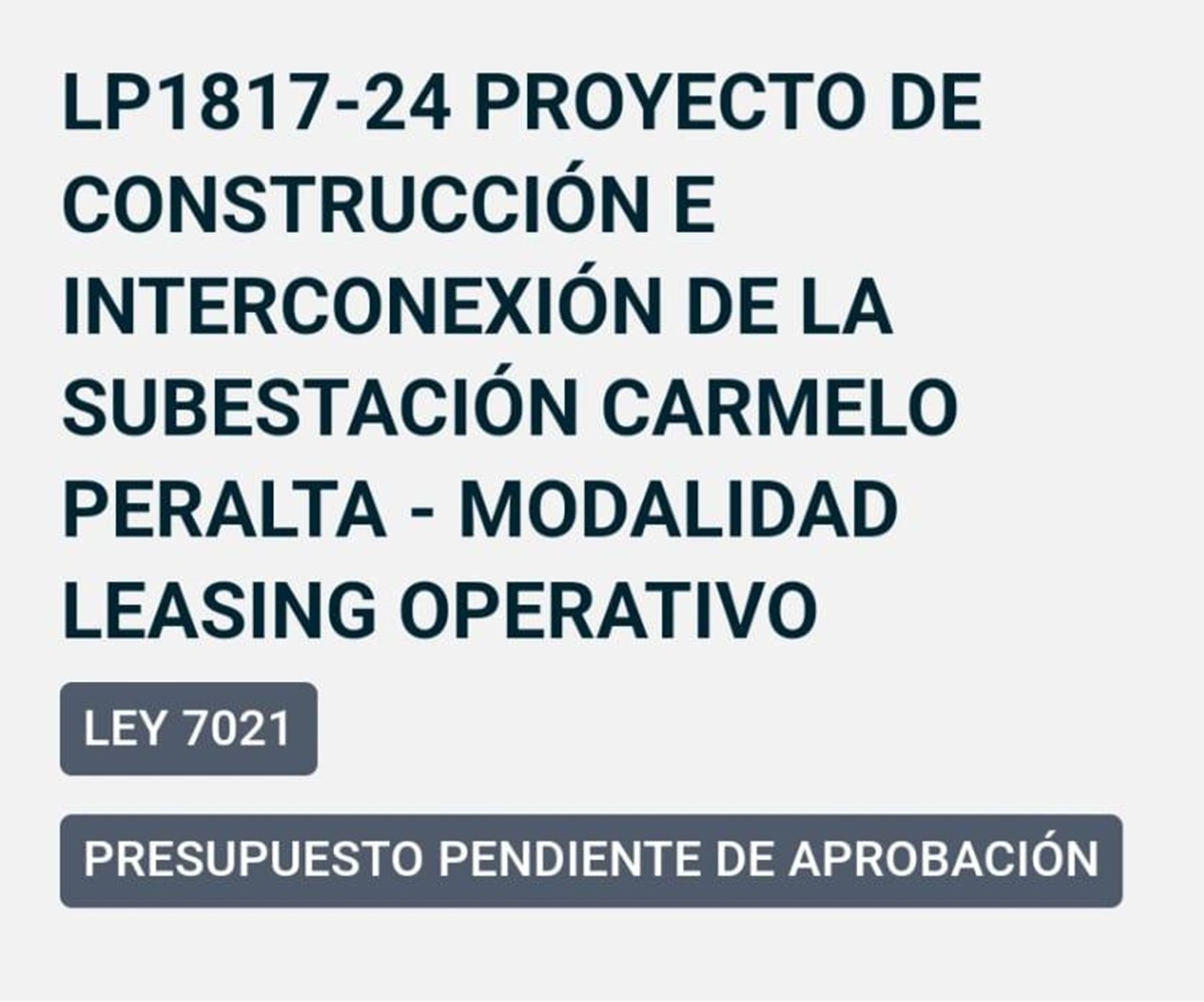 Se anunció del inicio del proceso de la Licitación Pública Internacional N° 1.817/25 del Proyecto de Construcción e Interconexión de la futura Subestación Carmelo Peralta, bajo la modalidad Leasing Operativo, autorizada por Resolución de Presidencia ANDE N° 8.304.