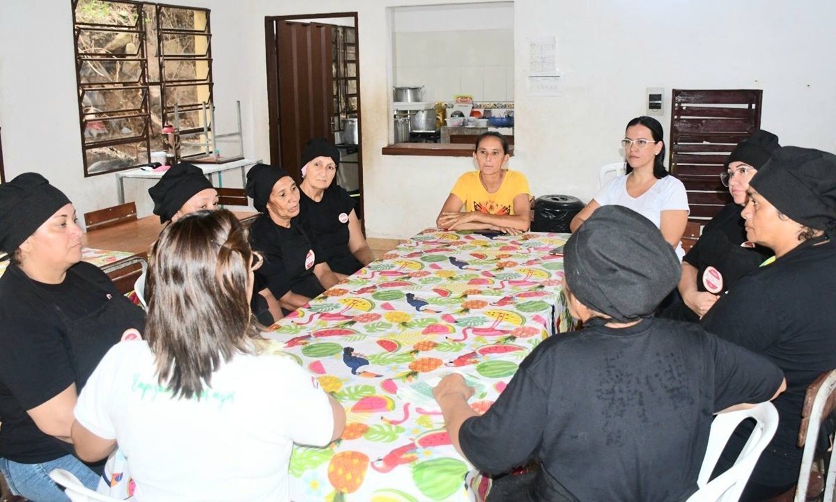 05/03/25: La Secretaria Departamental de Educación, Lic. Edita Jara junto a la Jefa de Gabinete Abog. Carmen Méndez, llevaron a cabo una importante reunión de coordinación en el marco del «Programa Hambre Cero» con la Coordinadora Distrital de F. Olimpo y las cocineras encargadas de la Escuela y Colegio Mayor Ramón Bejarano.
