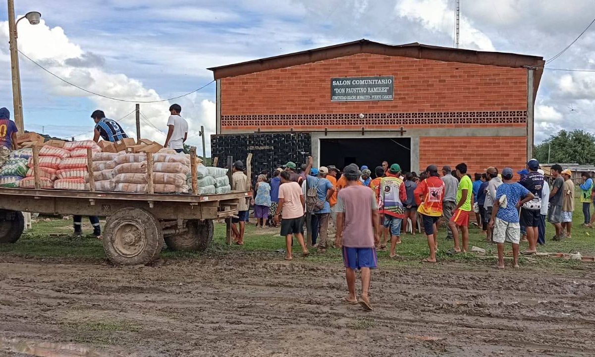 En la tarde de ayer, el gobernador Arturo Méndez acompañado de la primera dama departamental Camila Ramírez, encabezó el operativo de asistencia con kits de alimentos a pobladores de la Comunidad Km 40 de Puerto Casado.