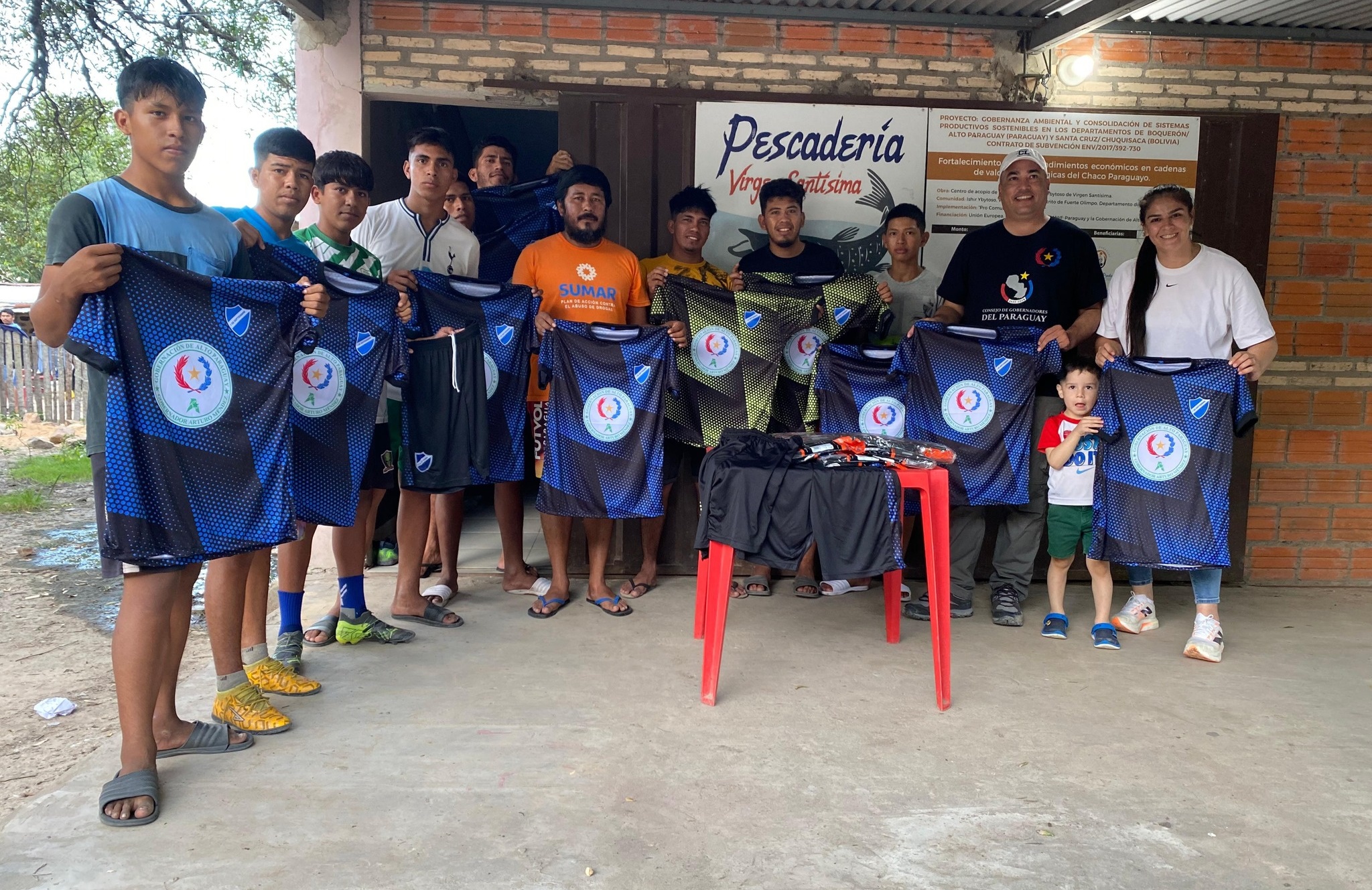 05/05/25: El gobernador Arturo Méndez, junto a la primera dama departamental Camila Ramírez, entregó indumentarias deportivas al Club 7 de Setiembre de la comunidad indígena Virgen Santísima, afiliado a la Federación Olimpeña de Fútbol de Salón.