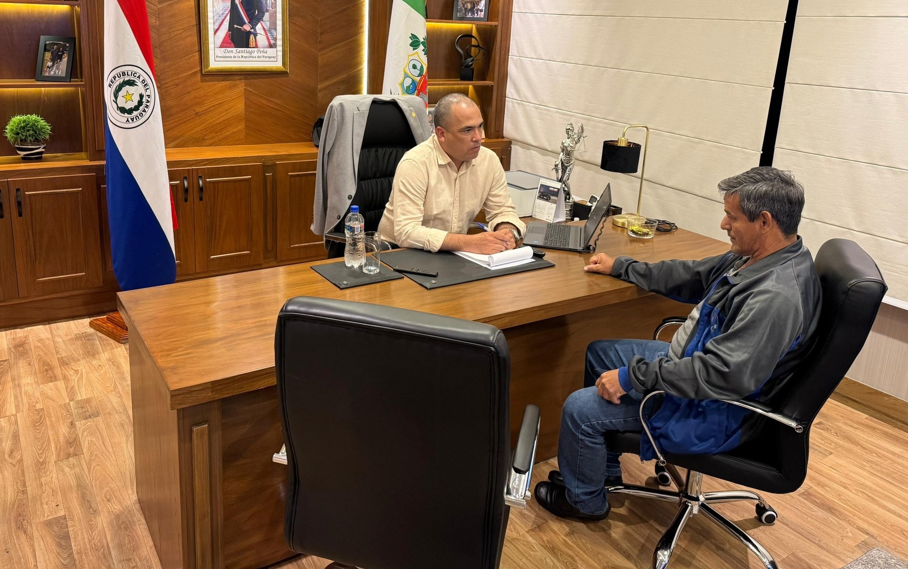 09/05/25: Cerrando una productiva jornada de trabajo, el gobernador Arturo Méndez mantuvo una fructífera reunión con el director departamental de educación Lic. Enrique Arias.