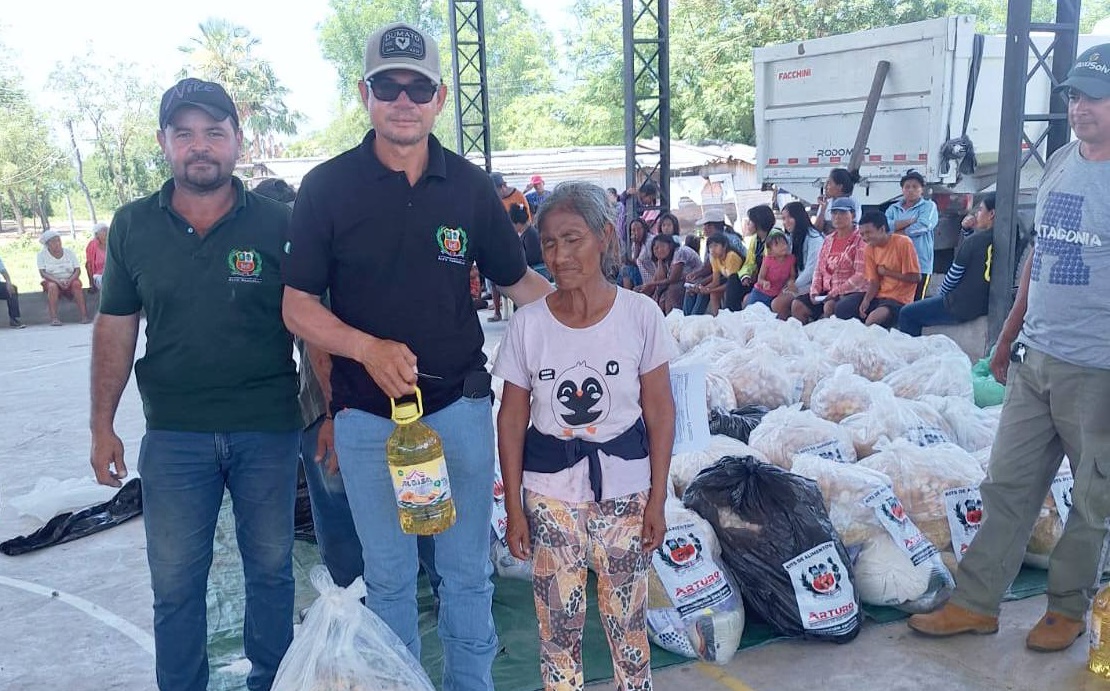 06/11/25: El Gobierno Departamental, bajo la administración del Gobernador Arturo Méndez, continúa llevando alivio y acompañamiento a las familias de las comunidades Riacho Mosquito y Boquerón Kue del distrito de Puerto Casado, mediante la entrega de kits de víveres de 48 kilogramos adquiridos con recursos de la Gobernación.
