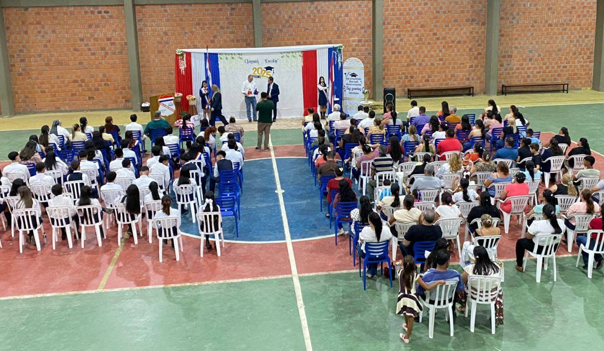 01/12/25: El Gobernador Arturo Méndez, acompañado de la Primera Dama Departamental, participó de la Ceremonia de Clausura Escolar de la Promoción 2025 “Sesquicentenario de la Epopeya Nacional 1864-1870 Ecolástica Barrios de Gill – Homenaje al Centenario de la Guarania”.