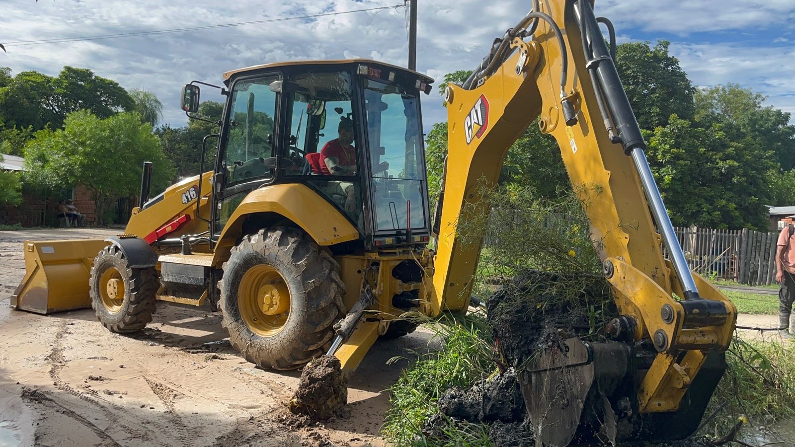 Maquinaria y funcionarios del Gobierno Departamental se encuentran trabajando arduamente en la mejora de la canalización y el desagüe pluvial en los distintos barrios de Puerto Casado, a fin de dar respuesta a las inundaciones registradas tras la última precipitación que afectó a la comunidad en la jornada de hoy.
