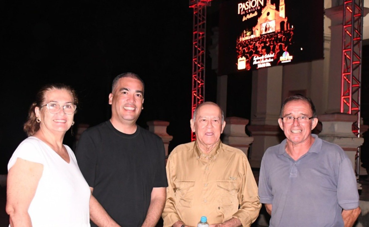 El «Viernes Santo», el Gobernador de Alto Paraguay, Arturo Méndez y el equipo de la G.A.P. compartimos con la comunidad unas horas de reflexión viendo la Película La Pasión de Cristo en la explanada de la Catedral de Fuerte Olimpo.